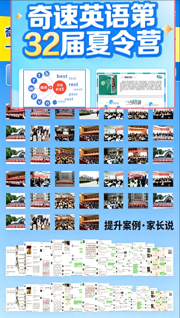 不管你家孩子是英语基础薄弱、极度厌学,还是口语不好、不敢开口,亦或是想冲刺高分、实现弯道超车,奇速英语夏令营都能精准适配需求。31届口碑沉淀,4万+学员亲证,用实力说话,用效果赋能。现在报名,早鸟福利限时开启,名额有限,赶紧为孩子抢占一个暑假逆袭的机会,让他在这个夏天,悄悄变优秀,开学惊艳所有人,改写自己的英语命运!